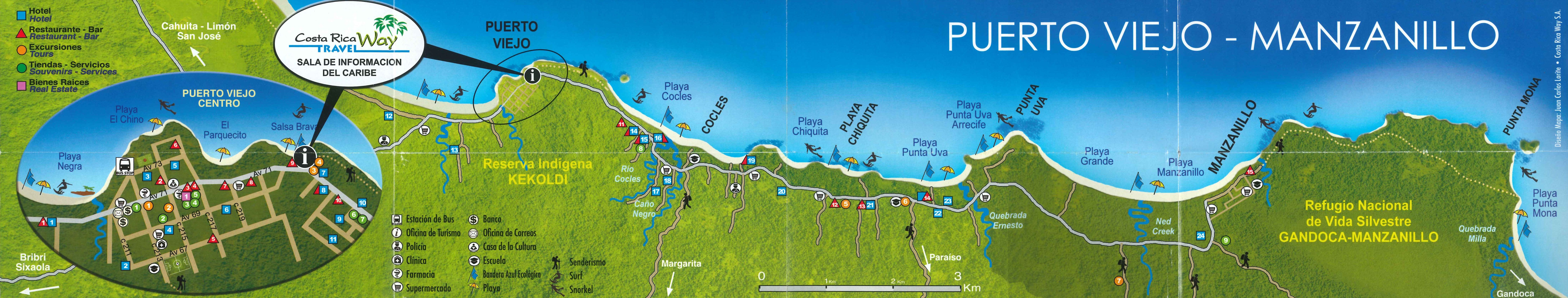 sur del Caribe. Aquí hay un ambiente afro-caribeño que poco tiene que ver con el resto del país, la mayoría de sus habitantes son descendientes de jamaicanos o de otras islas del Caribe, que vinieron para trabajar en la construcción del ferrocarril o en las plantaciones bananeras. Es un buen destino para acabar el viaje, el ambiente en general es más relajado, y la belleza natural es abrumadora. Hay playas de arena negra, de arena blanca, para surfear, para bucear, y fantásticas reservas naturales como
