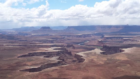 Una de las excursiones más interesantes es la que lleva a Upheaval Dome. La cúpula de 5 km de diámetro y 547 metros de profundidad, en realidad no parece una cúpula, sino un cráter. ¿Cómo se originó la Upheaval Dome? Una de las teorías indica que el lento movimiento de los depósitos de sal subterráneos empujaron las capas de arenisca hacia arriba. Otra teoría más reciente intenta demostrar que la cúpula se originó con el choque de un meteorito. Sea como sea, es un pedazo de agujero.