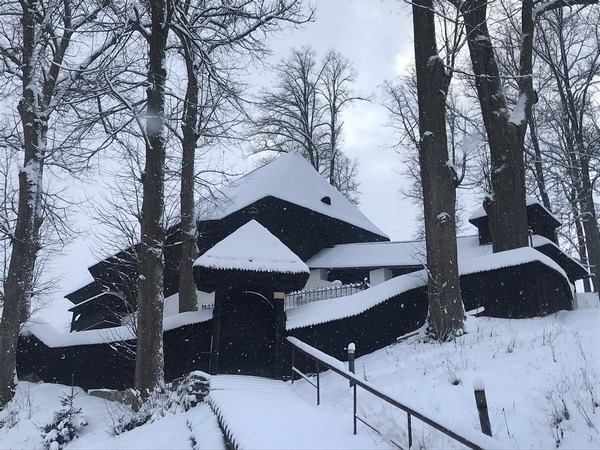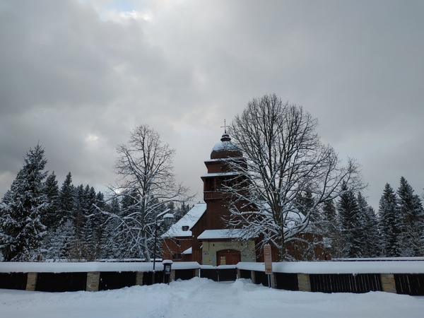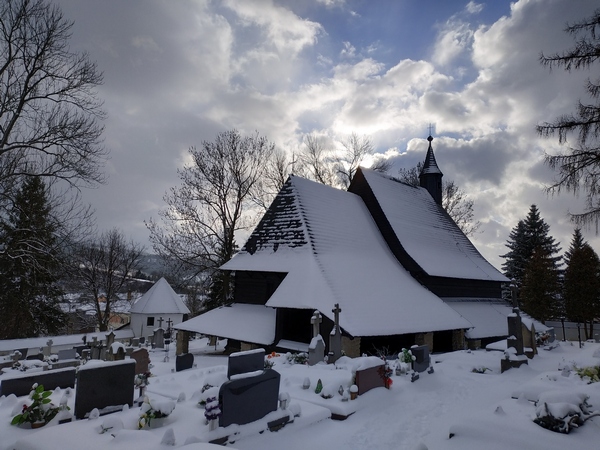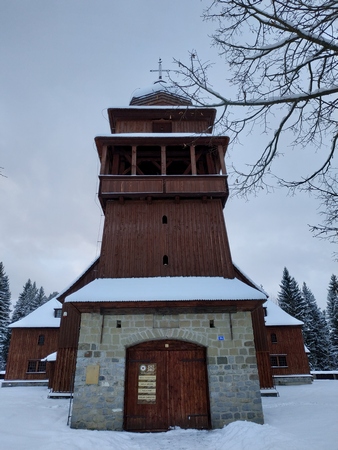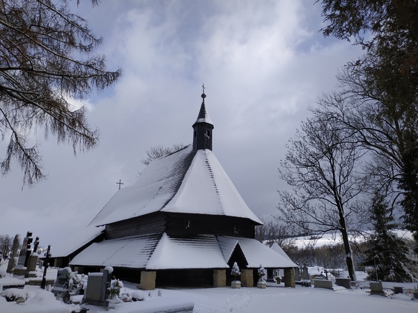 La última visita es a la Iglesia de Svaty Kriz. Fue originalmente construida en Paduza en 1693 y trasladada a Svätý Kríž el último cuarto del siglo XX, durante la construcción de una presa en la zona. Es uno de los edificios de madera más grandes de Europa, la planta en forma de cruz mide 45 mts de largo, tiene 12 puertas, 72 ventanas, y capacidad para 6.000 personas. El campanario de madera independiente, fue añadido más tarde. Cerrado acceso al patio, hay que verla desde fuera.