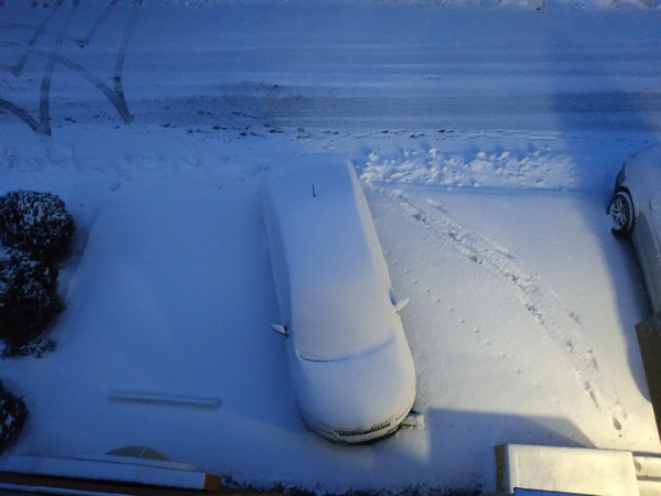 Todo el día ha nevado, por la carretera había que ir con cuidado pues había poca visibilidad en algún momento. El firme, aunque nevado y enfangado, no ha sido un problema con los neumáticos de invierno. Sólo las carreteras grandes de dos carriles están completamente limpias y se puede coger velocidad, el resto, aunque pasa la máquina quitanieves, no lo hace tan a menudo.