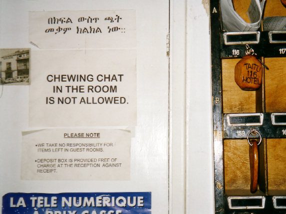 Qad. És un estimulant consumit des de fa segles a la regió de la Banya d’Àfrica. La planta es conrea als vessants humits i caloroses, entre 1500 i 1800 mts d’altura, i és àmpliament exportada a Djibouti i Iemen. L’amarga fulla es mastega durant hores, combinant-la amb petits glops de sucre, i grans quantitats de liquit. És consumida gairebé en exclusivitat per homes.