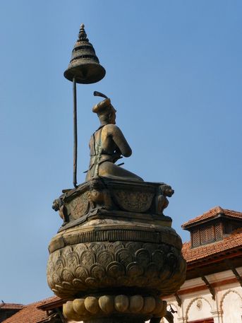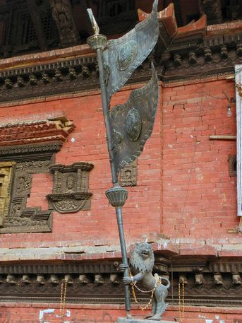 Davant de la porta esta l'estàtua del rei Bhupatindra Malla (1.699) en actitud de pregària a la part alta d'una columna, i al seu costat la Campana de Taleju (XVIII), usada per anunciar les oracions vespertines i matutines al temple del mateix nom, i el temple de Vatsala Durga (1.727), un temple hindú en pedra de dos pisos dedicat a una manifestació de la deessa Parvati.