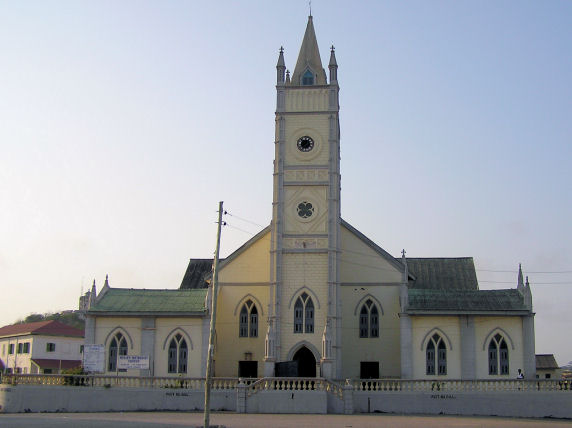 Castell de Cape Coast va ser construït per al comerç de fusta i or a la fi del segle XVI, sobre un sortint rocós a pocs metres del rompent de les ones. Passejant el seu contorn, files de canons alineats apunten a un enemic imaginari, i es respira aire colonial per tot arreu. Quan els anglesos prenen el control, el comerç de l'or ha decaigut donant pas al tràfic d'esclaus, als cellers del castell, centenars de milers d'esclaus esperaven ser embarcats cap a Europa i el Nou Món per la "porta de no tornada". El museu del castell conté àmplia informació i documentació sobre aquesta època. Des de 1979 és Patrimoni Mundial per la UNESCO.
