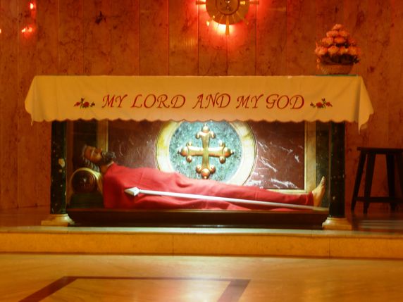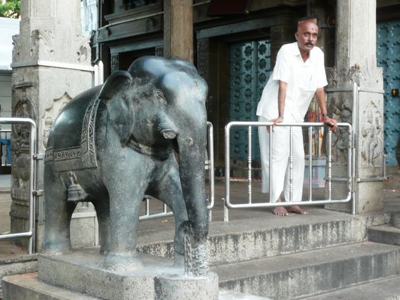 Catedral de Sto Tomás. Junt amb la Catedral de Santiago de Compostela i l'Església de San Pere al Vaticà, son les tres úniques esglésies construïdes sobre la tomba d'un apòstol. Es creu que sant Tomás, va arribar a Madrás procedent de Palestina a l'any 52, en missió evangelitzadora, i que va romandre aquí fins al moment de la seva mort a l'any 72. Va ser enterrat prop del mar, a Mylapore, on es va construir una petita capella, que fins i tot va ser visitada per Marco Polo durant el seu viatge a àsia. Amb el pas del temps aquella capelleta es va convertir en aquesta magnífica estructura neogòtica. Ens trobem al nostre driver pregant a la gruta, on les restes del sant reposen a l'interior d'un taüt de plata. Als jardins de la catedral es troba Mylai Matha, una petita estatueta de la nostra Senyora de Mylapore, portada per San Francisco Javier, i enfront de la qual diuen solia pregar durant llargues hores. Molta gent creu que quan va arribar el tsunami de 2004, l'església es va salvar gràcies al pal de St. Tomás. La llegenda diu que el sant va clavar aquest pal com marca per a evitar que el mar inundés la sorra, protegint així la vida de la gent que vivia prop de la riba.