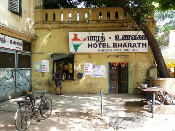 Saravanaa Bhavan. Enfront de Kapaleeswarar. Local de menjar ràpid, net i molt concorregut. Aigua gratis, però no és d'ampolla. Kal Dosai (29 INR), coca de farina fina i esponjosa, servida amb diverses salses picantes i una mini sopa de llentilles; 14 idly sambar (35 INR), sopa de llentilles amb verdures i boles de pa al seu interior com les del esmorzar; i 2 plane lassi (32 INR). Tot uns 2,5€.