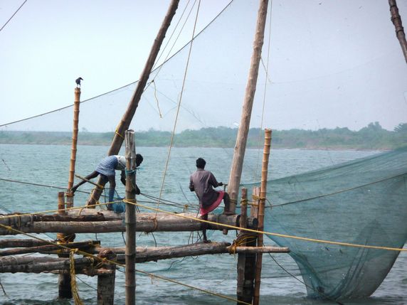 xarxes de pesca xineses són sens dubte un dels elements únics de Kochi. Es creu que van ser introduïdes per comerciants de la cort de Kublai Khan, sobirà del gran Imperi Mongol. Són instal.lacions fixes que són usades com inusual mètode de pesca. Durant la marea alta les xarxes són submergides en aigües poc profundes durant un curt període de temps, d'uns cinc i deu minuts, fins que és alçada mitjançant un sistema de contrapesos per un equip de quatre homes, capturant els petits peixos que arriben fins a allí. Es un espectacle curiós de veure. La xarxa ocupa una superfície de mes de 200 mts quadrats, i cadascuna d'elles s'alça uns 20 metres sobre l'aigua.