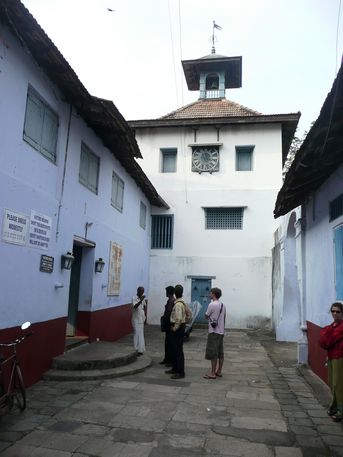 Paradesi Synagogue, la sinagoga més antiga de la Commonwealth, construïda al 1568 per descendents -sobretotde jueus espanyols sefardís. Esta decorada amb rajoles xineses del segle XVIII, i amb candelers i llums d'aranya de cristall de Murano. La planta superior, reservada a les dones, seguint els ritus ortodoxes que els impedeixen celebrar culte al costat dels homes, no és accessible al public. Tampoc es permet l'accés al seu interior en pantalons curts. Negoci a la vista, a la botiga del costat els lloguen per 10 INR. Sortint del barri, el carrer que duu fins al Palau de Mattancherry, on no entrem, esta ple de botigues, posats de records, roba i galeries d'art. Un lloc ideal per a comprar regals per a familia i amics.