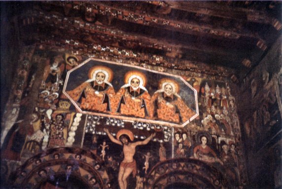 Església Debre Berhan Selassie. Dos quilòmetres al nord-est es troba l’església més famosa del país. Salvada d’un saqueig per un "oportú eixam", vuitanta caps alats de querubins etíops cobreixen tot el sostre, tots ells amb una expressió lleugerament diferent.