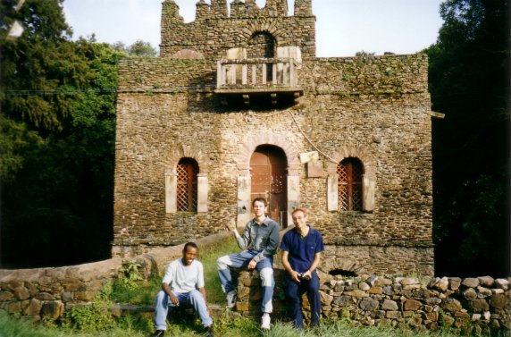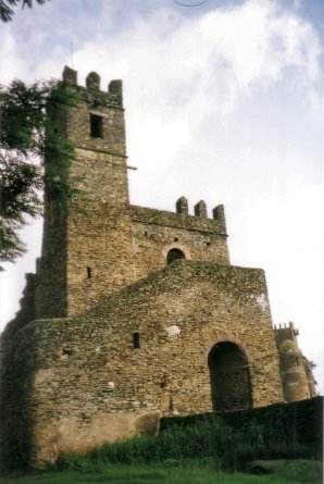 2 i inclou castells, palaus i cases, envoltats d’un alt mur de basalt. Una impressionant vila medieval enmig d’Àfrica. El més antic i espectacular és el Castell de Fasilidas, més enllà es troben la piscina, la Biblioteca de Yohannes (fill de Fasilidas), el Palau de Iyasus (fill de Yohannes), el cementiri amb les restes de l’emperador Dawit, la Lion House, on fins a l’any 1991 residien una parella de lleons etíops, estables, un bany turc, i per últim el Castell Mentewab (esposa de l’Emperador Dawit).