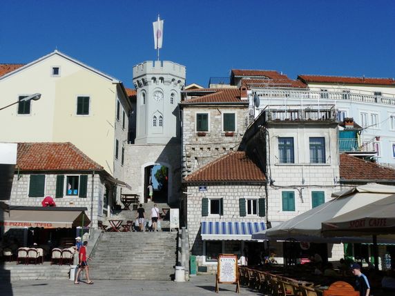 Forte Mare, una bella fortalesa construïda pel rei de Bòsnia Tvrtko I al 1382 que parece sembla sorgir del mar. La plaça Nikola Đurkovi esta presidida per la