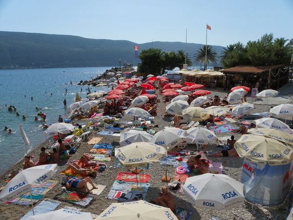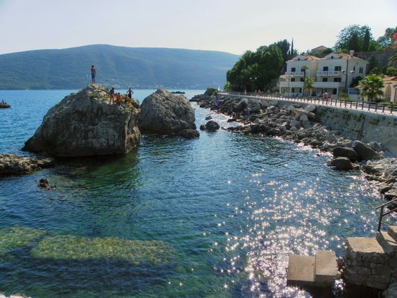 Kamenari, creuant una dotzena de barris (pobles) enganxats literalment l’un a l'altre, que prolonguen el front marítim amb una infinitat de petites i diminutes platges de pedra, d'aigües netes i cristal·lines, a les quals, això si, en la majoria de casos és difícil accedir descalç. Es tracta d'un llarg front marítim de 25 km, que va des Igalo, conegut pels seus centres de spa i salut, fins a la península de Luštrica, davant de la ciutat, famosa per les seves zones de platja, com Mirište Žanjic, i Rose. Per tenir un punt de vista diferent de la costa, i a més fer una mica d'esport, lloguem un kayak doble per 20€ / 4h a
