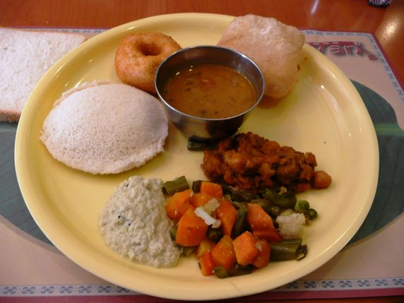 esmorzar vegetarià del sud de la índia. Sol ser un bufet lliure on hi ha verdures i llegums bullits;