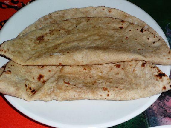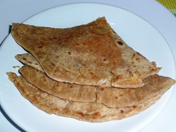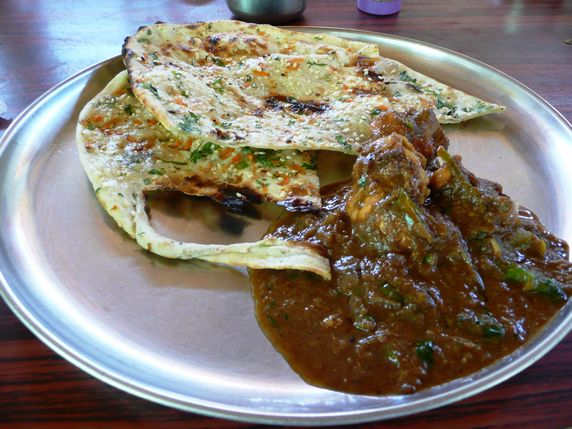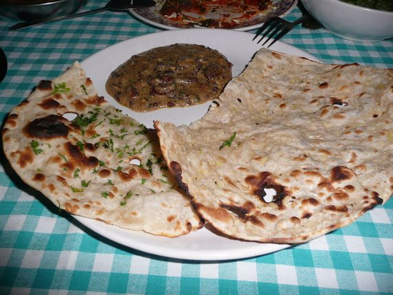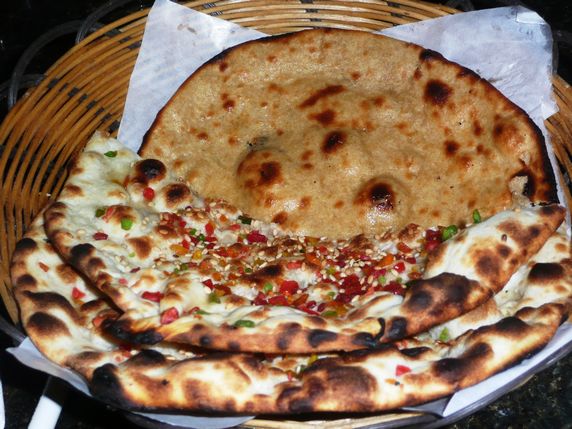 Tipus de pa. Sol utilitzar-se com acompanyament i existeix una innombrable varietat. El mes conegut és el naan, pa pla de farina de blat sense llevat. També hi ha roti o phulka (farina de blat cuinada sobre una graella de ferro), porotta (farina i ous), chapati (farina integral, aigua i sal), dosay (crêpe amb especies molt fina elaborada a força d'arròs i llentilles).