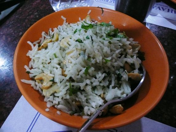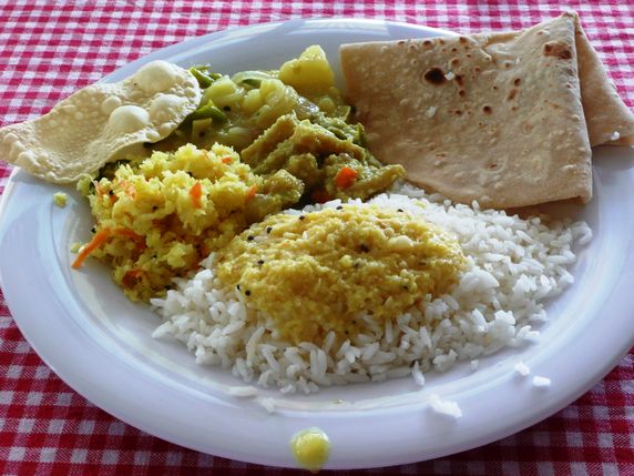 Plats combinats. Abunden als restaurants de menjar barat: arròs, quatre o cinc salses, curris (petites guarnicions) i chapattis. També és molt típic el sambhar, brou de llentilles amb tamarinde i una barreja de diferents especies
