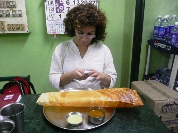 doshas, crêpe amb especies molt fina elaborada a força d'arròs i llentilles. Per descomptat no falta te, amb llet o