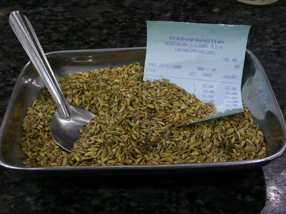 Desenganyar-vos, a l'índia no perdre-ho aquests quilos que us sobren. Però mes val que us agradin l'arròs i les verdures, perquè si no ho passareu malament. Tot just hi ha carn o peix, gens de greixos, ni edulcorants, ni colorants, tot sa i natural (quin fàstic). Això si, molt picant i molt especiat. Hi ha dos grans tipus de cuina: vegetariana, la mes estesa en els estats del sud; i no vegetariana, que pot incloure cuina europea (cara i dolenta), deliciós menjar xines, i cuina del nord del país. Hi ha dues delícies que seria un crim perdre's: el