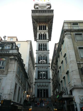 Elevador de Santa Justa (2,80€ a/t). Construït al 1902 per unir els barris de la Baixa Pombalina i el Chiado, es tracta d'una estructura metàl·lica enterament de ferro, de 45 mts d'alçada, que alberga al seu interior dos ascensors revestits de fusta amb capacitat per 24 persones cadascun.