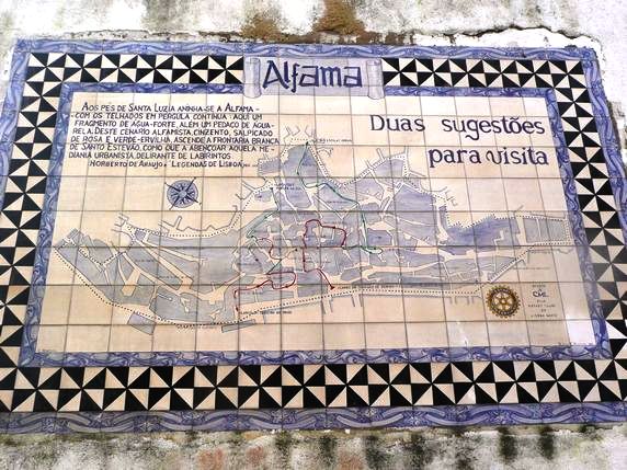 animal mitològic segons Saramago. Aquest és el lloc on es van establir els àrabs, i una zona poc afectada pel terratrèmol de 1755 a causa de la seva base rocosa. Per això encara es conserva avui el vell traçat de la kasbah medieval, un desordenat eixam d'estrets carrerons empedrats de traçat irregular, empinades costes i pronunciades escales, on encara es tendeix roba a les balconades de les façanes principals. És aquesta senzillesa de carrers sense grans façanes arquitectòniques, ni destacats monuments, que conserva intactes totes les aromes i colors d'antany, el que converteix Alfama en un dels focus turístics de la ciutat.