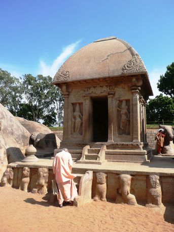 (250 INR, entrada conjunta per a tots els temples de la ciutat). Esta excavat en una única roca i ha romàs en el seu lloc des de fa 1.400 anys. Encara que molts dels detalls han estat erosionats per les inclemències meteorològiques pròpies de la seva proximitat al mar, encara manté enormes capitells d'antics llocs de culte i un munt de graons tallats A la roca. Els dos capitells principals del temple contenen santuaris dedicats a Shiva, i un tercer dedicat al Visnu jeuent.