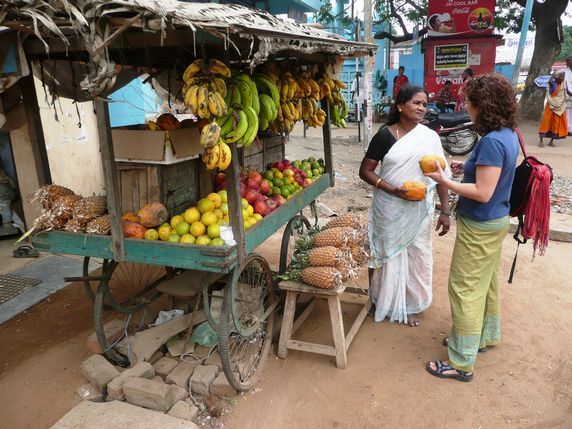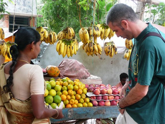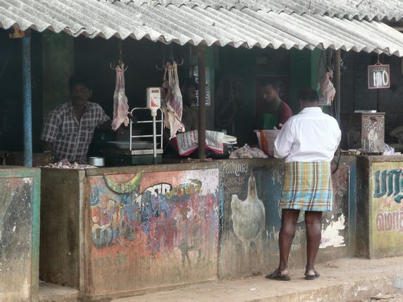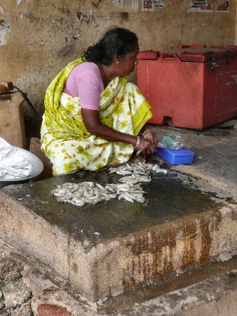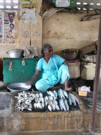 Comencem el dia enviant unes postals. El post office és un edifici decrepit situat en un carrer sense asfaltar pròxim al mercat. Al mercat tot just hi ha cinc llocs oberts de carn i una desena de peix. Bé, el peix mes que llocs són venedors, asseguts amb les cames creuades sobre una ampla vorada amb les peces davant d'ells. Unes dotzena de gambes o crancs, alguna peça de peix, chanquetes secs. A l'exterior del recinte hi ha algunes gallines vives, i tenderetes de fruites i verdures que donen al carrer principal. Allí ens proveïm de fruita per al tren.