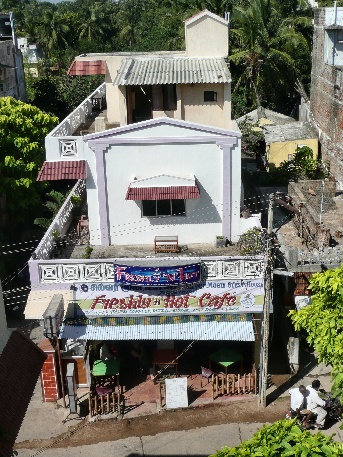Nautilus. Net, còmode, bon ambient i bon servei. Amb un lleuger aire colonial francès. Disposa d'una petita llibreria amb alguns volums de Asterix i Obelix, i Tintin. 3 french toasts, 2 ous fregits, torrades, te i cafè, 100 INR.