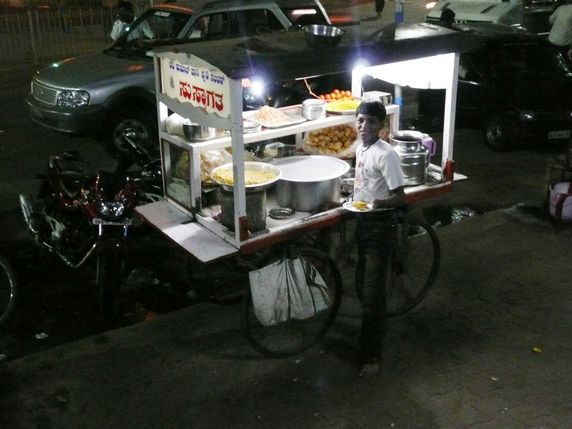 Ashoka Rd, entre la Torre del Rellotge i New Statue Circle. Una vintena de tederets al carrer ofereixen per unes poques rupies deliciós menjar picant que portar-se a la boca amb els dits. Ideal per sopar.