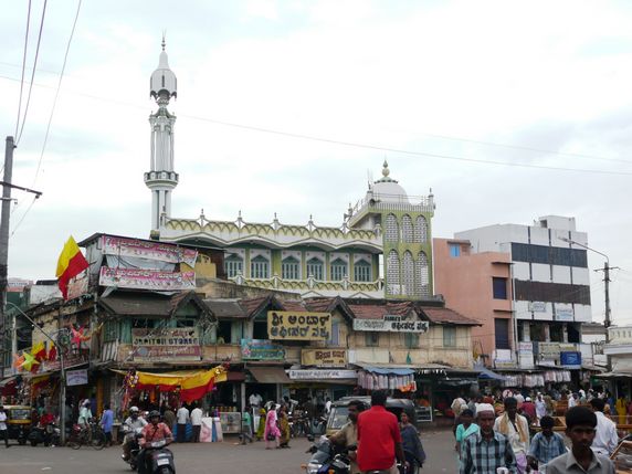 Pròxima destinació Hassan. Des de l'hotel un rickshaw ens demana 30 INR per anar a l'estació d'autobusos, que segons ell està a 6km. No triga ni dos minuts a arribar. Li paguem 10 INR entre crits i queixes del conductor. Encara l'hem regalat 5 INR.