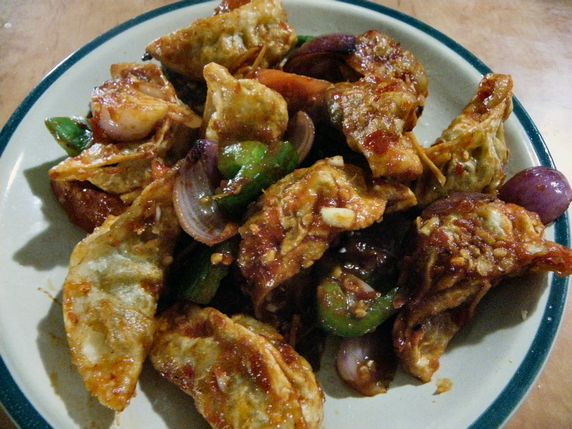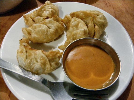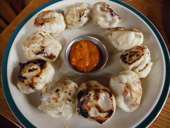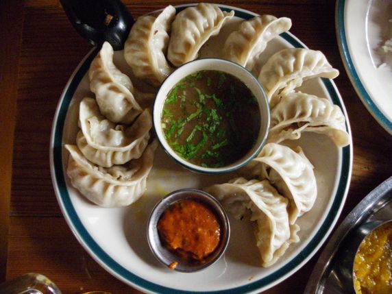 momos, raviolis bullits farcits de carn o verdura i acompanyats de sopa o salsa picant o ambdues i que se serveixen en racions de deu o dotze. Altres plats són