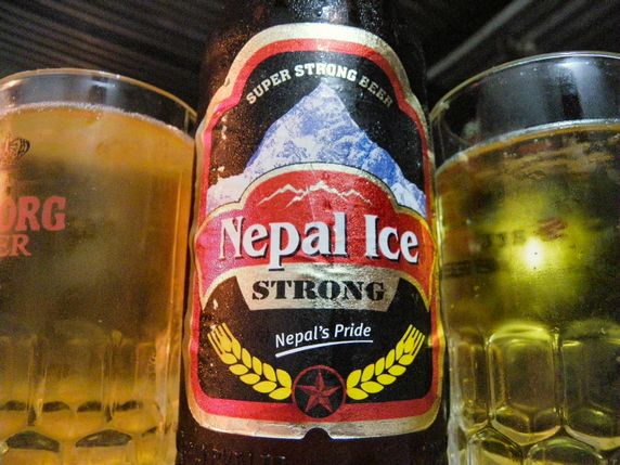 En quant a begudes alcohòliques les cerveses més populars són Nepal Ice, Everest i Ghorka, encara que també poden trobar-se Tubrog i San Miguel.