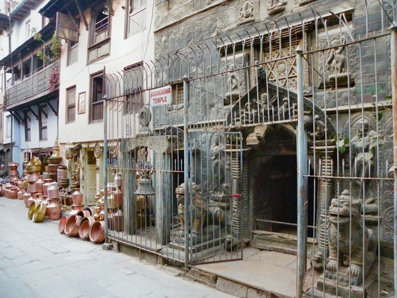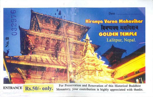 Acces 50 npr. Després de creuar una fosca i estreta porta de pedra accedim a un pati envoltat de molins d'oració, estatuetes en bronze de micos, elefants i déus, ofrenes, gravats en les parets, no queda ni un buit lliure. El pati, dos graons per sota, simbolitza