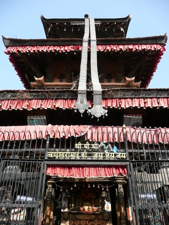 Monestir Chandeshwari, un temple tipus pagoda de tres teulades construït al 1.663. Creuem dos patis plens de