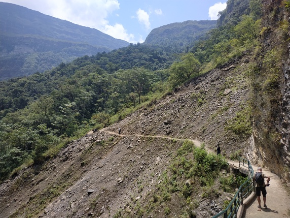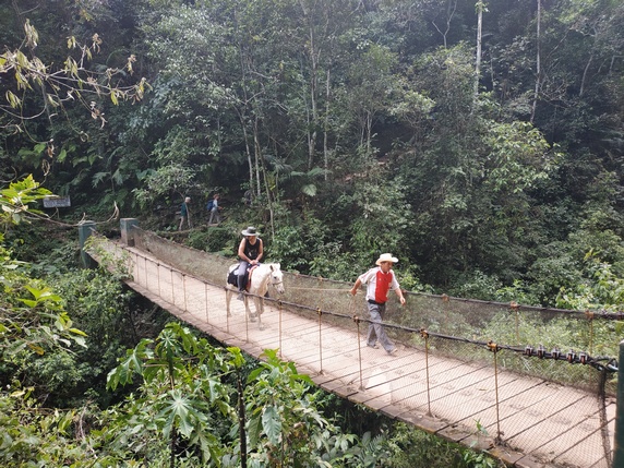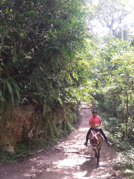 boletos (10 soles) que dan acceso al camino, incluidos en el precio del tour. La caminata es un total de 5,2 km de ida y otros tantos de vuelta, se vuelve por el mismo sendero. Entre el km 1,7 y el 2,9 hay un fuerte desnivel, que durante la vuelta cuando se hace en subida es bastante duro. El resto del sendero aunque hay continuos cambios de nivel, rara vez es completamente llano, son bastante más suaves. En total, se tarda entre 2h y 2h30. Si quieres tomártelo con más calma, se pueden contratar caballos por 40 soles ida y vuelta, que te dejan a 45 minutos de la cascada, en el tramo más fácil.