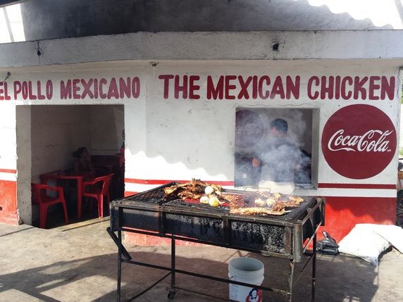 El Pollo Mexicano. Nos decidimos por medio pollo mejicano y dos chuletas de cerdo, todo ello servido con arroz y tortitas de maíz, y un par de cervezas. 185 MXN.