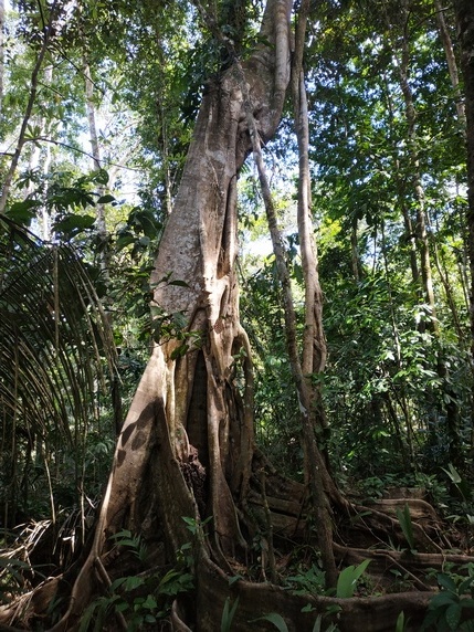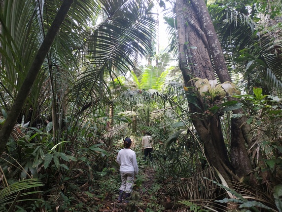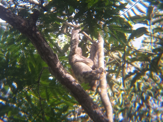 Hacemos una parada a las 11h30 para almorzar en playa Caracha, algo de fruta y pollo con arroz que ha sobrado del desayuno. Paramos a comer en Panteón y después hacemos una caminata de1h30 por la selva, vemos monos frailes y tucanes. Es una selva húmeda, el suelo está cubierto de una capa de hojas y materia vegetal en descomposición, que cubre charcos y algunos animales, como por ejemplo serpientes. Es por ello que nos proveen con botas de agua, protegen hasta la altura de las rodillas, son impermeables y nos protegerán de mordeduras ocasionales.