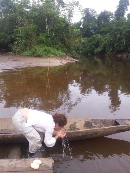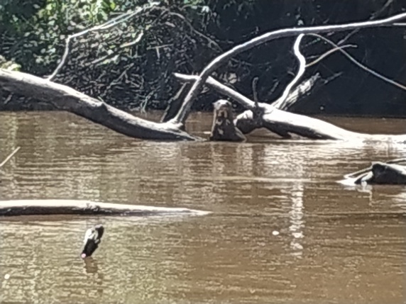 Durante la noche ha estado lloviendo en algunos momentos, pero por suerte amanece despejado. Hoy había prevista una caminata, pero le pedimos suspenderla. Ayer había mucho barro en la selva, y eso que hacía días que no llovía, hoy seguro que será un lodazal. Así que hemos salido pronto, hemos parado un rato en Poza Galicia, donde es más fácil ver delfines, en Panteón para comer, y hemos seguido hasta Poza Gloria donde hemos llegado a las 15h. Nos hemos dado una ducha en el río y Rosa se ha lavado el pelo sin suavizante por primera vez en cuatro días.