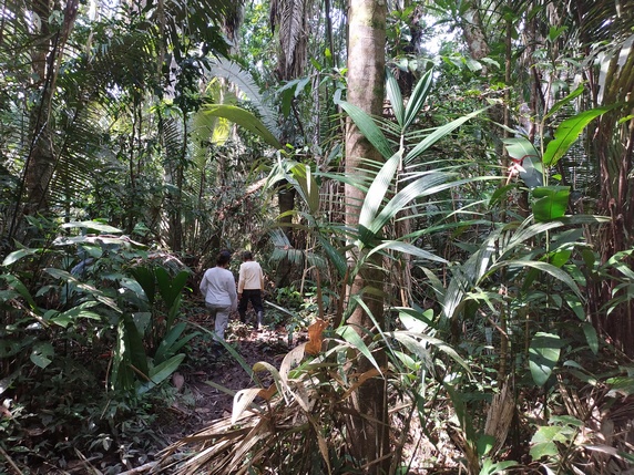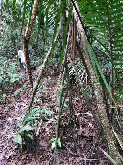 Camotal, salimos a dar un paseo por la selva hasta el río Aragón, una caminata de unas 3h30. Por el camino vemos monos negros y algunas perdices. Una hora antes de llegar, en el camino de vuelta, empieza a llover. Wellington, en un par de minutos, improvisa un refugio con hojas de palmera, pero una vez hecho decidimos que no llueve tanto y que es mejor seguir caminando antes de que apriete más. La selva es muy densa y aunque en algunos momentos aprieta, apenas nos mojamos. A las 12:15 llegamos a Camotal, y quince minutos más tarde ya está diluviando. Nos hemos salvado de poco. Durante un par de horas llueve muy fuerte, y estará haciéndolo hasta las siete de la tarde. Cancelamos todas las actividades y nos quedamos a cubierto disfrutando del paisaje y charlando.