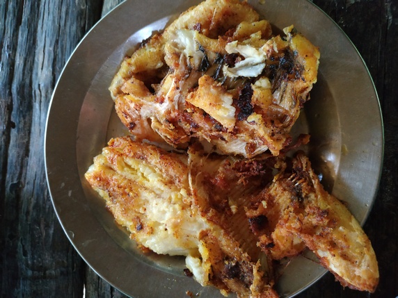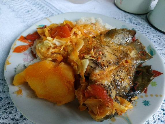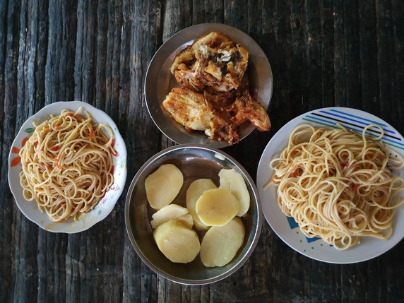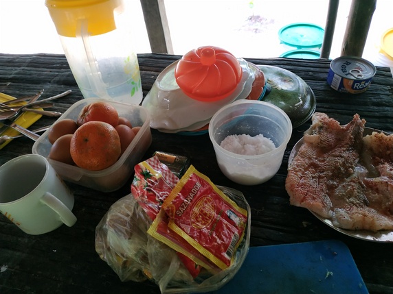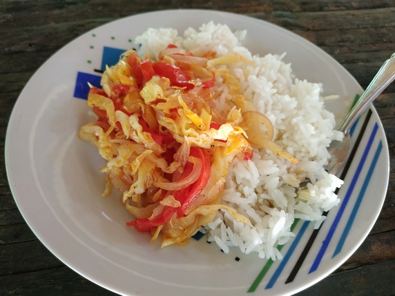 Las comidas son básicas pero muy buenas, Jovita es una gran cocinera. Casi siempre empezamos con una sopa o crema, antes del plato principal a base de arroz, espagueti o tortillas, con tomate y cebolla, acompañado de pescado. De postre hace un arroz con leche riquísimo, y si no siempre hay fruta: plátano, mandarinas, granadillas…