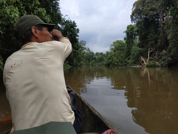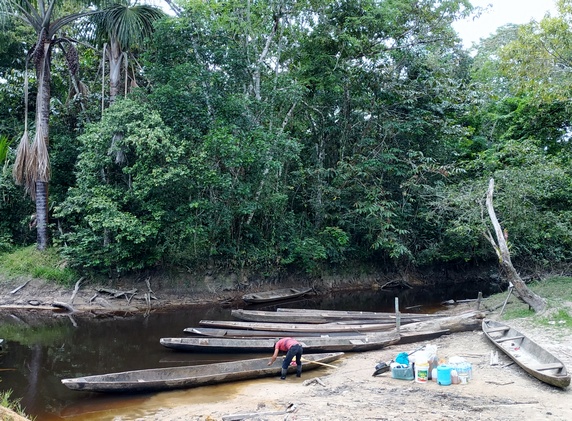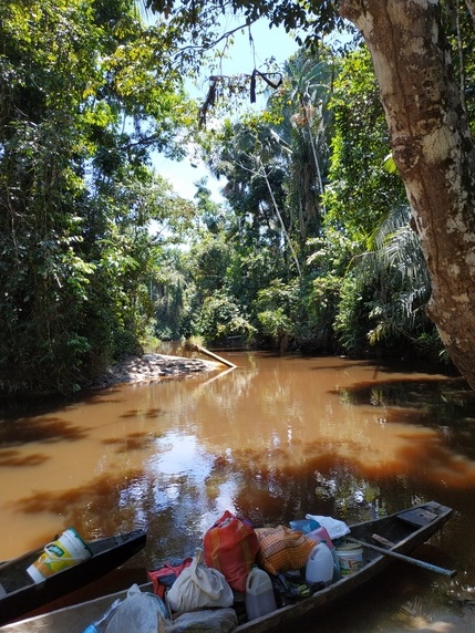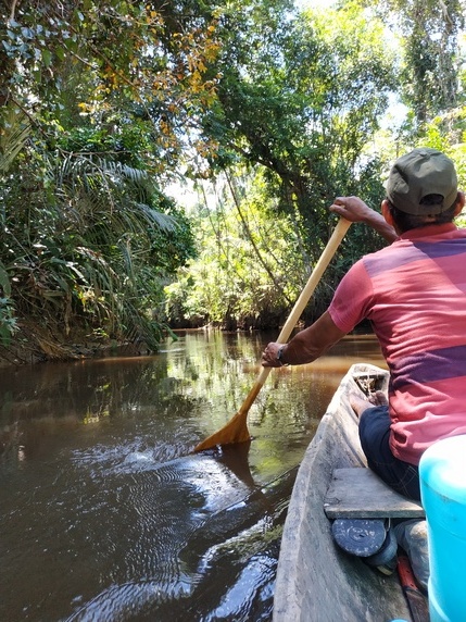La navegación la haremos siguiendo el rio Samiria, en una canoa de madera hecha de un solo tronco, amplia y cómoda. Reman Wellington delante y Jovita detrás haciendo además funciones de timonel, nosotros nos situamos en medio. La comida y enseres para pasar cinco días rellenan los huecos.