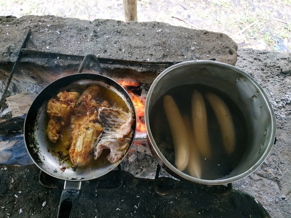 Nos levantamos sin prisa ni despertador, seguimos el horario solar. Anochece a las 18h y amanece a las 6h, después de cenar poco puedes hacer, leer con el frontal o ver alguna serie que lleves en el móvil/tablet, incluso con ello difícil es que no estés acostado a las 21h. Desayunamos huevos con pan, fruta, mermelada y té. Recogemos, montamos la canoa y salimos a navegar.