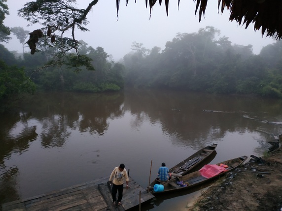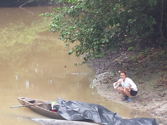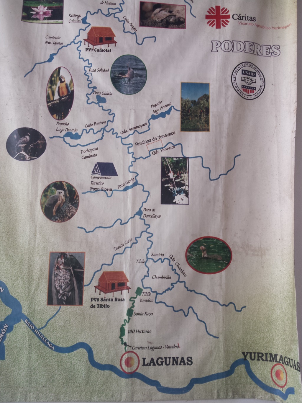 Santa Rosa de Tibilo. Es un camino medio empedrado medio encharcado y con poco mantenimiento, en total cuarenta minutos de baches y charcos. En las oficinas de la reserva rellenamos la inscripción, nos regalan un par de postales muy chulas, y colocamos todos los enseres y víveres en la canoa. Aunque parezca increíble cabe todo, nos subimos los cuatro y partimos. Salimos a las 10h.