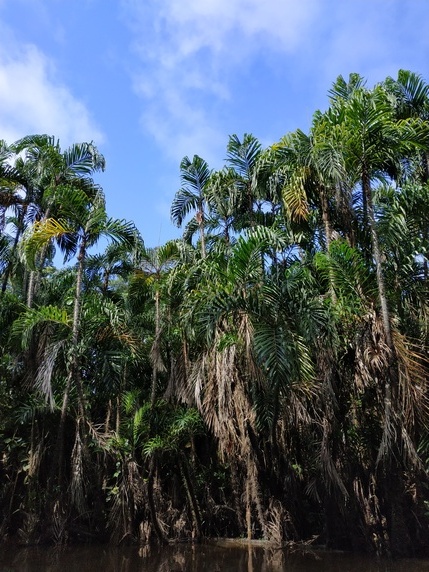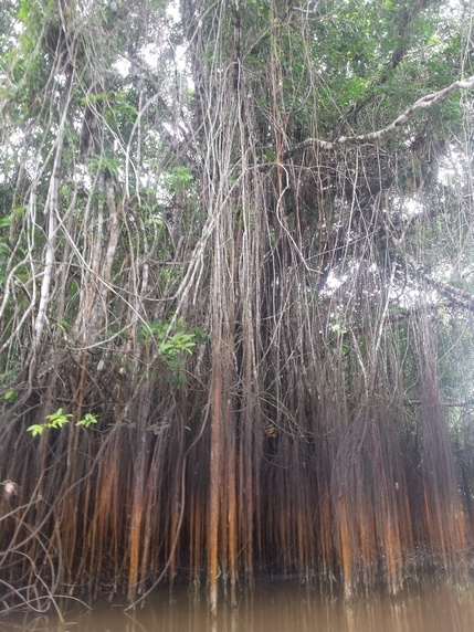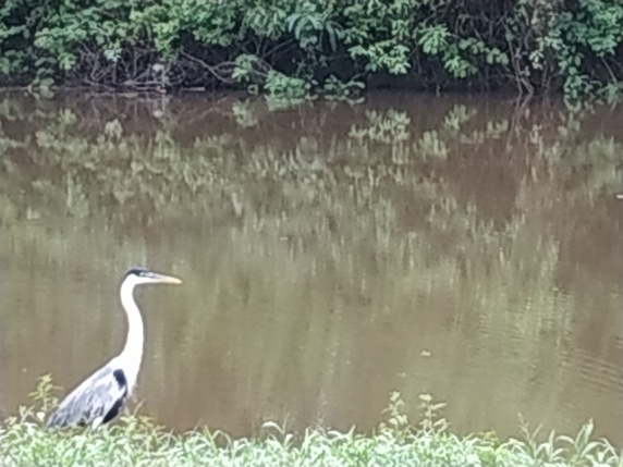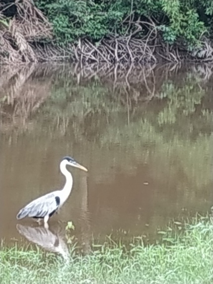 Quien venga aquí pensando en África está equivocado, aquí los animales hay que buscarlos entre la densa vegetación, no se muestran fácilmente, ni en grupos grandes, pero eso no significa que no haya una gran variedad. Durante el camino vemos gran cantidad de aves, como papagayos amarillos y azules, gavilanes, tucanes, piapia, poucar (del color de los taxis de Barcelona), garzas, martín pescador, buitres, además de caimanes y delfines, son algunos ejemplos de la diversidad que alberga la selva.