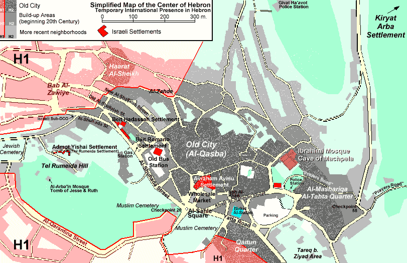Este relativamente pequeño sector es el centro geográfico, económico, histórico y religioso de Hebrón. La principal misión aquí del IDF (ejército israelí) es la protección de los colonos, sometiendo a la población palestina con restricciones de tráfico, controles de documentación intensivos, checkpoints y puestos de vigilancia armada en tejados y torretas. La vida en el H2 se ha hecho imposible para los árabes, que la han abandonado casi por completo.