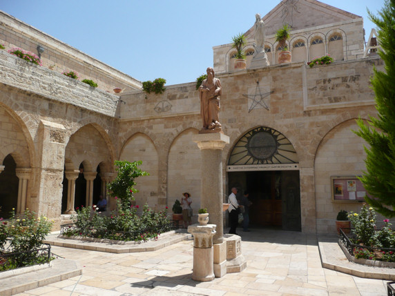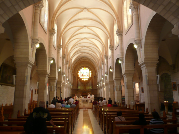 Iglesia de Sta. Catalina, desde donde se retransmite la Misa del Gallo a todo el mundo la noche de Navidad. Los padres franciscanos hacen una procesión diaria de una iglesia a otra atravesando estos túneles a las 12:00, siendo el único momento en que se abren al público. Saliendo de esta iglesia nos encontramos con el tranquilo