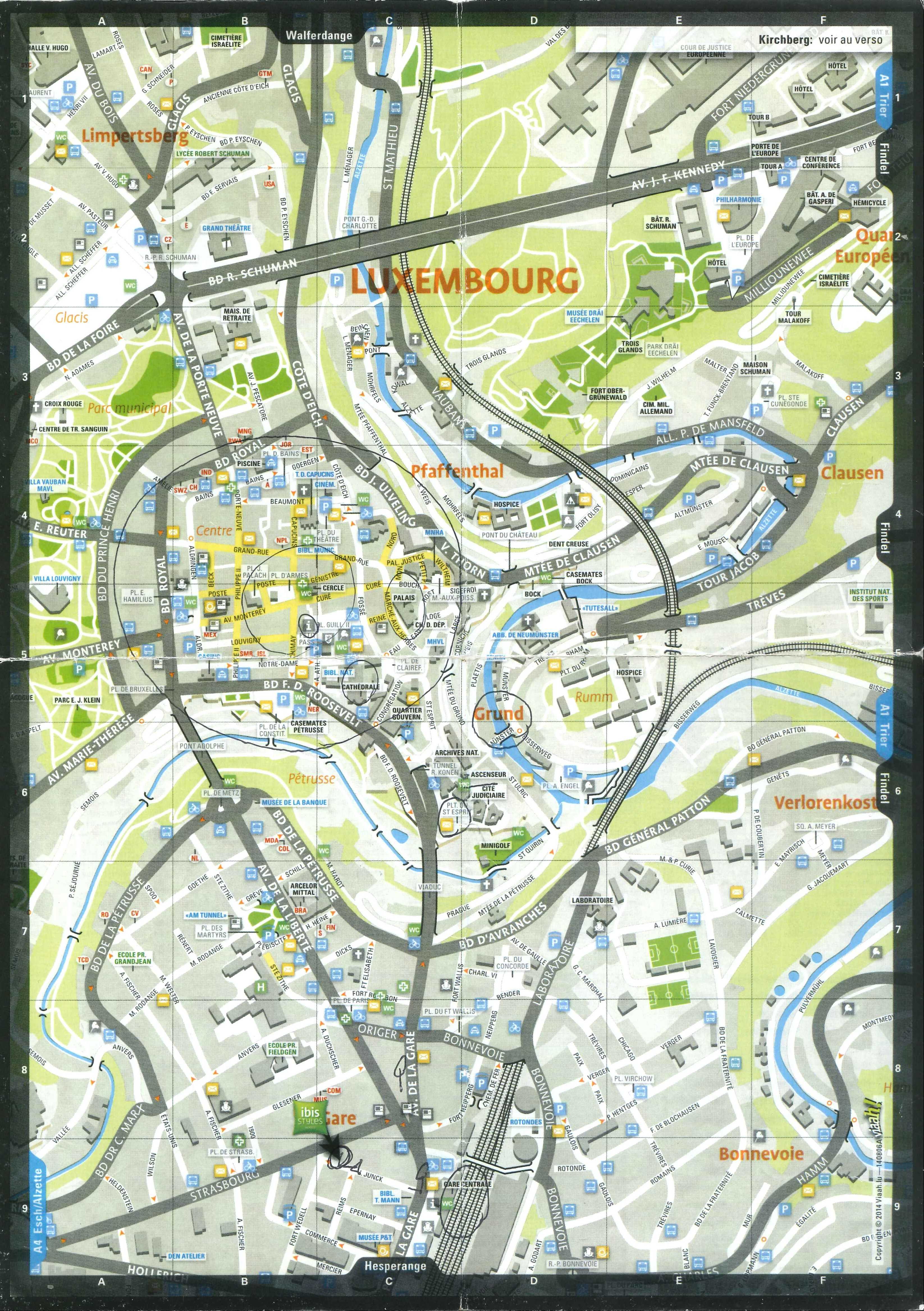 ciudad de Luxemburgo creció bajo la protección de una fortaleza construida en 963 sobre un acantilado. Su centro urbano esta situado en la confluencia de los ríos Alzette y Pétrusse, que crean estrechos valles con profundas gargantas de 70 mts de altura, atravesados por numerosos puentes y viaductos, que dan acceso a una ciudad distribuida en varios niveles. A pesar de todo Luxemburgo se recorre facilmente a pie, es una ciudad pequeña y tranquila de apenas cien mil habitantes, con poco tráfico donde abundan las plazas con bares y terrazas, las calles peatonales adoquinadas, y los parques y pequeñas areas forestales.