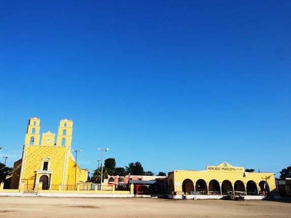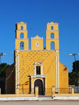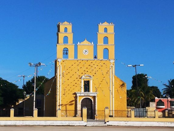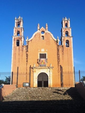 Tecoh, donde hay un convento franciscano dedicado a la Virgen de la Asunción, construido en el siglo XVII sobre la base de una pirámide maya. En