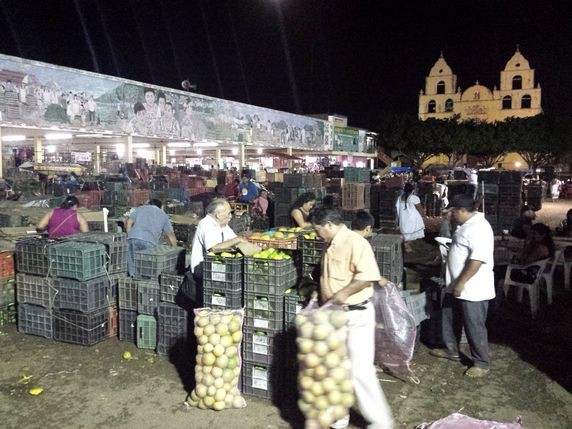 Oxkutzcab, conocida como la huerta del estado. Desde su Mercado 20 de Noviembre, decorado con un impresionante mural del artista maya Baas, se distribuyen todo tipo de frutas y hortalizas hacia el oriente peninsular, especialmente cítricos de los que goza fama esta zona. Durante el día está abierto al público, y por la noche parece que es para mayoristas. A cualquier hora, un mercado local muy animado. El centro de la población lo comparten el espacio formado entre la explanada que ocupa la iglesia San Francisco de Asís (XVI), el Parque Central, y la plaza del mercado municipal, en cuyos alrededores hay media docena de pequeños restaurantes familiares.