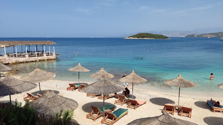Ksamil, otro popular destino de sol y playa. Es un entorno idílico de pequeñas calas de fina arena blanca y aguas turquesas, con cuatro islas deshabitadas cubiertas de densa vegetación, a las que se puede llegar nadando, en patinete o alquilando alguna pequeña embarcación. Cerca de aquí se encuentra el Parque Nacional Butrint, protegido por la UNESCO, donde se pueden visitar restos del pasado bizantino, veneciano y otomano de la antigua ciudad de Butrint.
