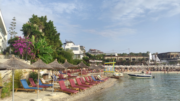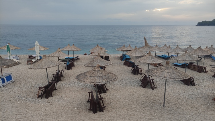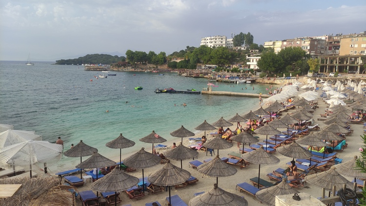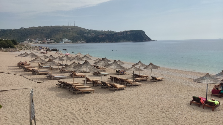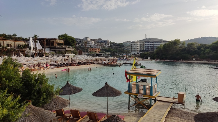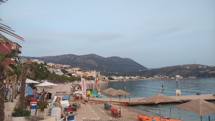 Uno de los primeros lugares destacados es Himarë, el clásico destino de hamaca y sombrilla que tanto abunda en esta zona. Dominada por las ruinas de un castillo en lo alto de una colina, a dos kilometros del centro, Himarë se asienta a lo largo de una amplia bahía que es una sucesión de playas enfocadas al turismo. Hoteles, restaurantes, tiendas, alquiler de tablas de paddle surf (12€ la hora), y sobre todo tumbonas y sombrillas de alquiler de todas las formas y tamaños (500 lek - 2 hamacas y 1 sombrilla, todo el día). Si además te gusta la vida nocturna y el ambiente animado, en el centro abundan las oportunidades.