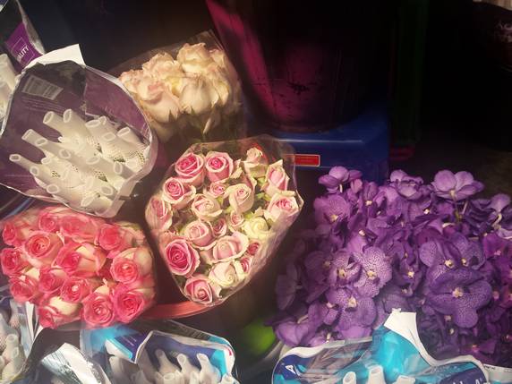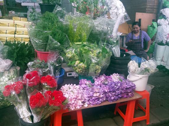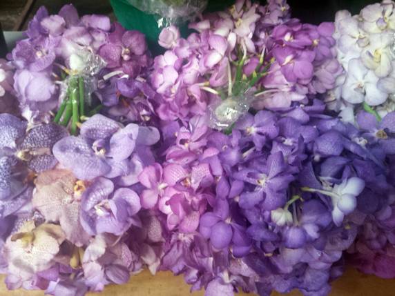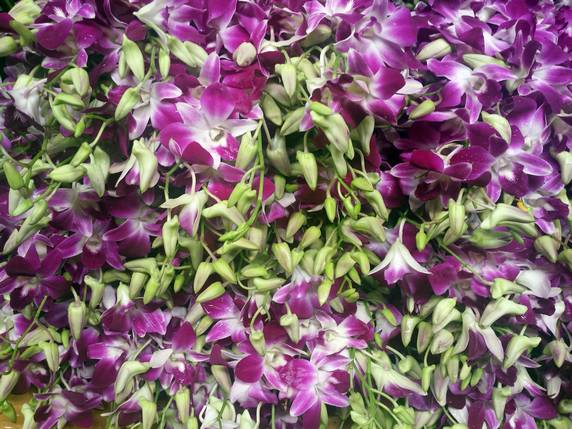 Pakh Khlong Talat es el mercado de flores de la ciudad. Aunque está abierto las veinticuatro horas, es entre medianoche y el amanecer cuando rebosa más actividad, pues coincide con la llegada de camiones y barcos cargados de flores frescas de todo tipo. Cuando llegamos a media mañana todavía hay mucha gente curioseando entre orquídeas, rosas, lilas, flores de todas formas y colores, o útiles para arreglos florales y confección de guirnaldas, que se convertirán en ofrendas a Buda en algún templo cercano. Un tercio del recinto está ocupado por