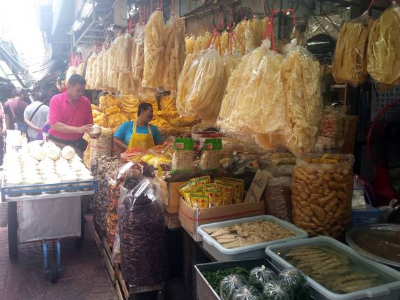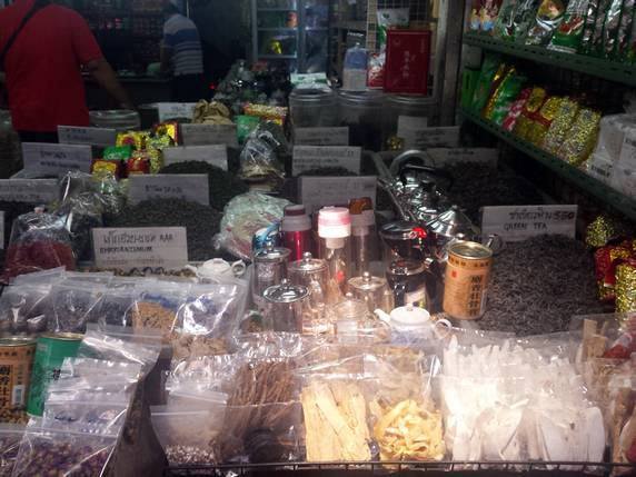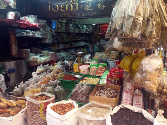 Chinatown, un barrio lleno de energía y bullicio, donde pequeños comerciantes en tiendas de medicina tradicional, joyerías con abundante oro, mercadillos y puestos de comida callejera, comparten espacio con aceras llenas de gente, tuktuks, motos, taxis y autobuses. Es un barrio compacto, fácil de explorar a pie, que discurre alrededor de Yaowarat Rd. Aunque la actividad es frenética y constante, es una zona tranquila, descongestionada, sin agobios, apenas nos cruzamos una decena de turistas en toda la mañana.